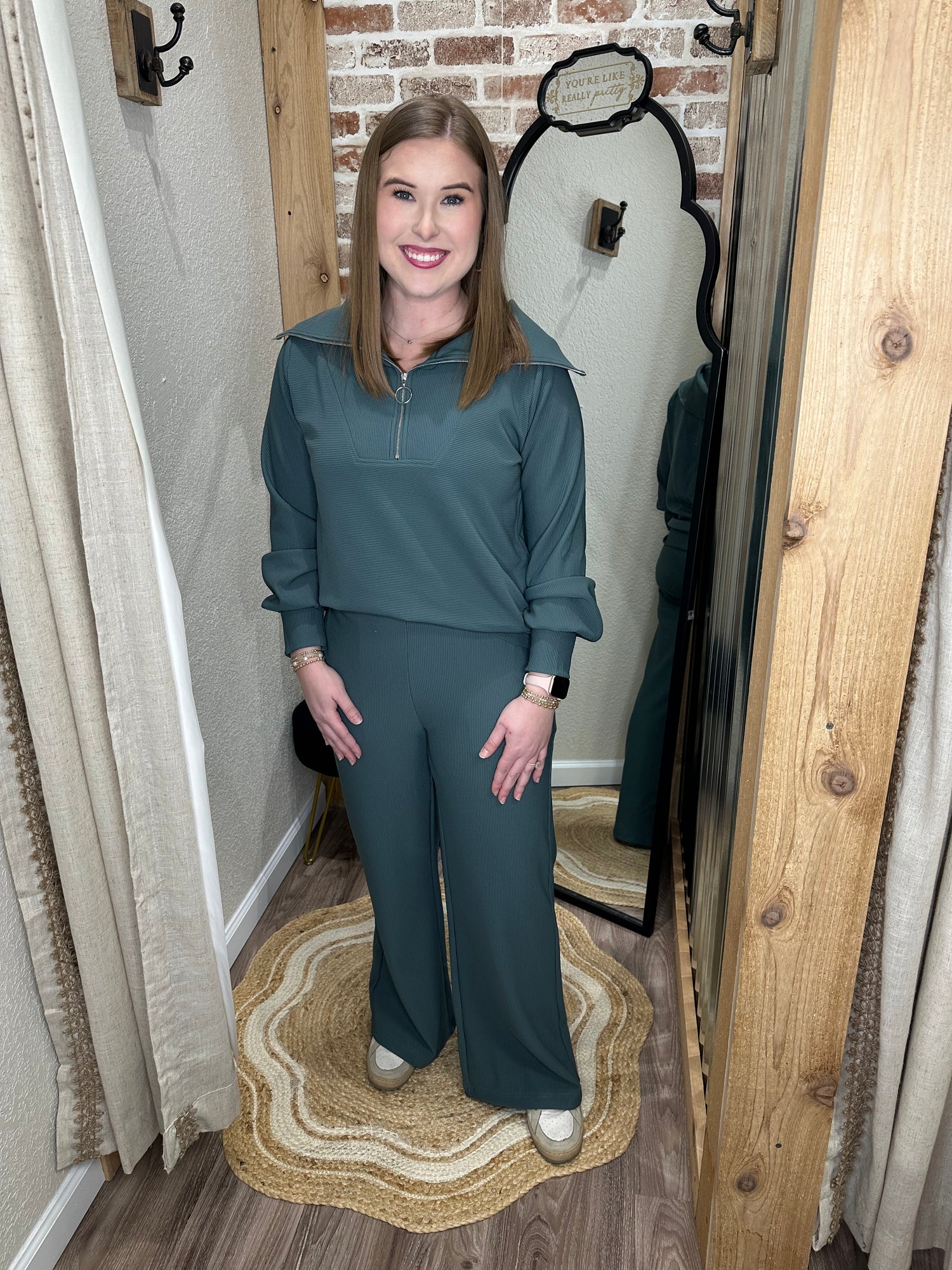 Ash Jade| RIBBED HIGH NECK HALF ZIP PULLOVER & PANTS SET
