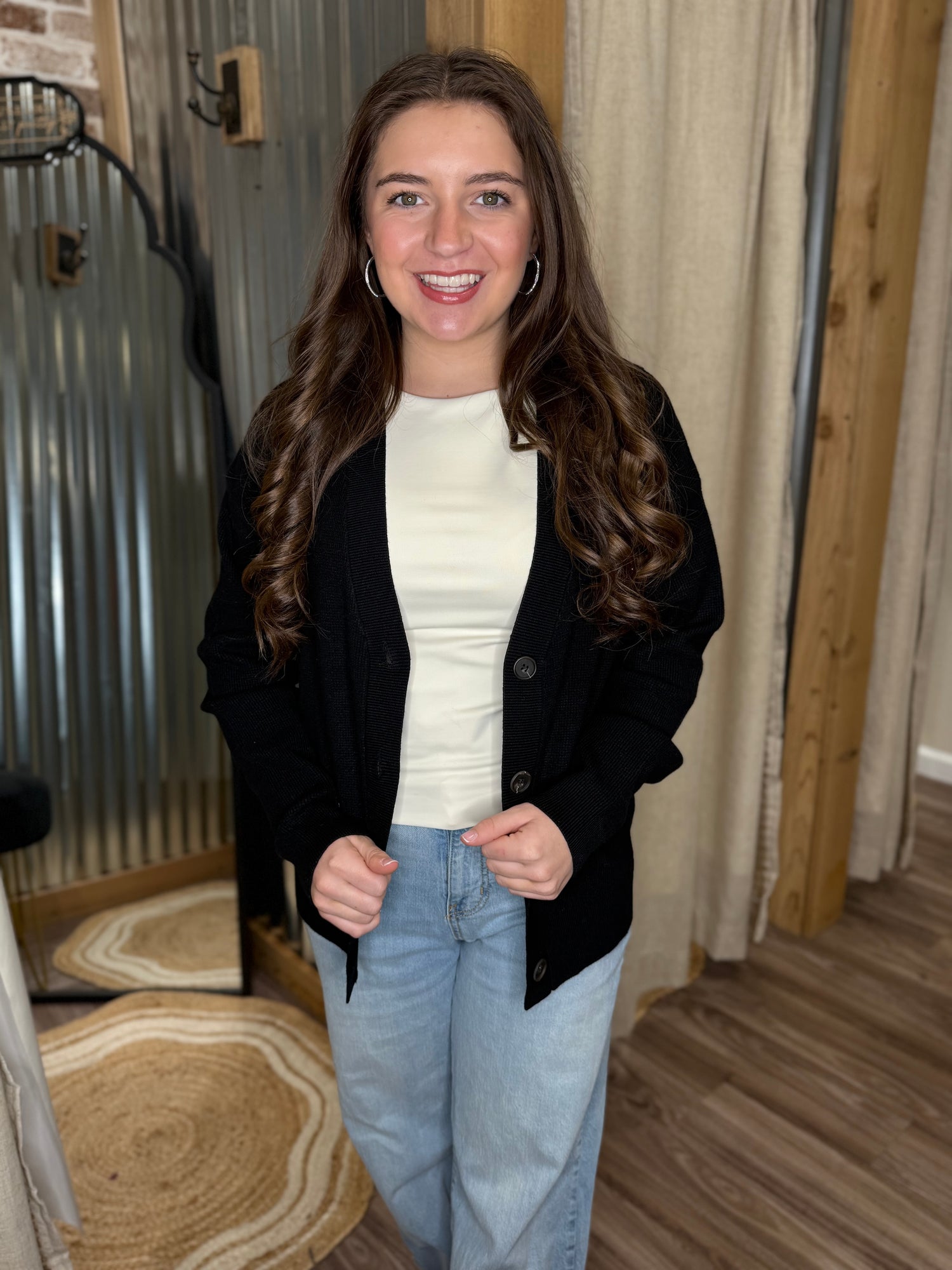DROP SHOULDER BUTTON FRONT VISCOSE SWEATER CARDIGAN