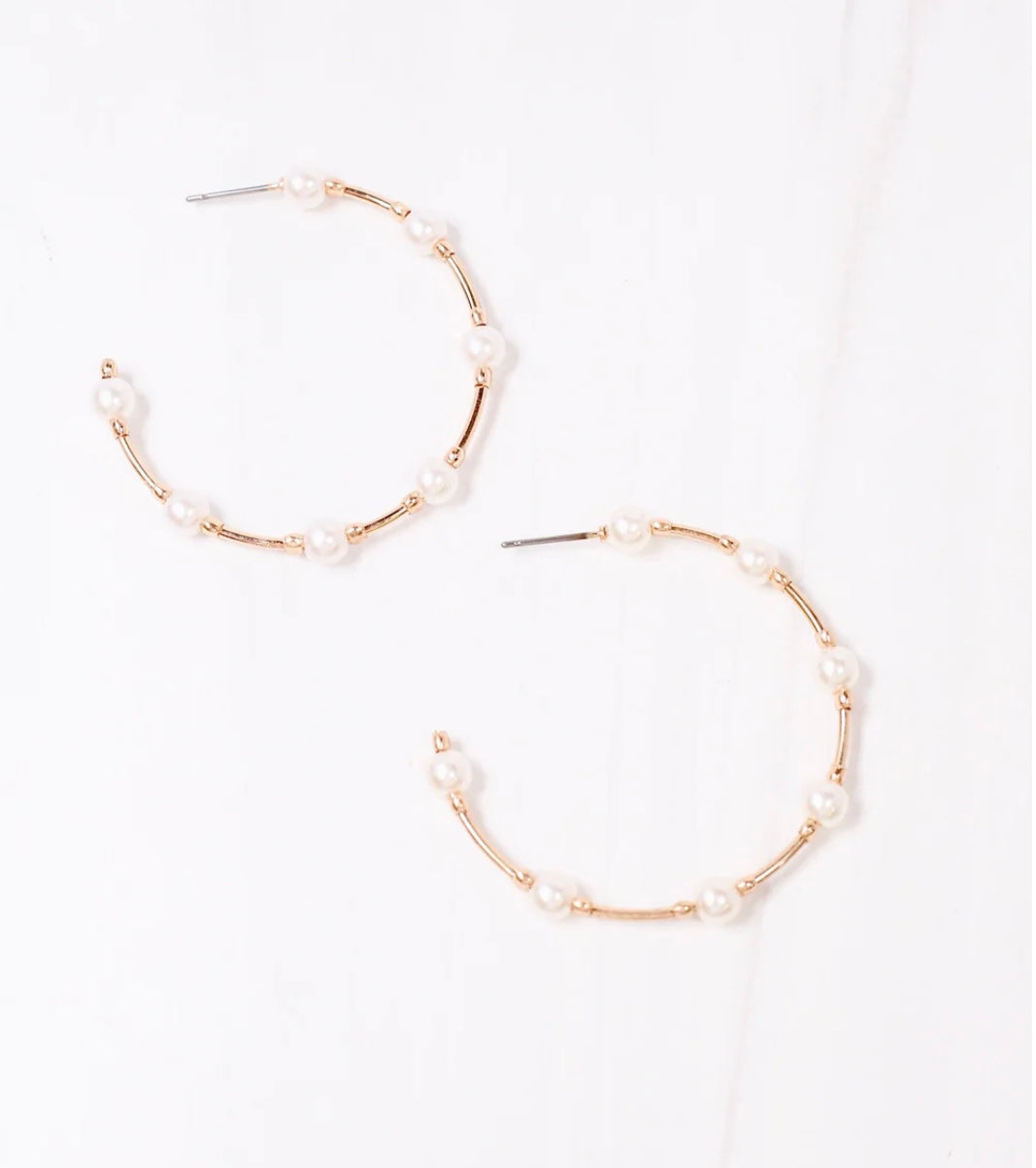This lightweight hoop earring is accented with pearls and gold spacer beads. It's a perfect earring for a classic look.