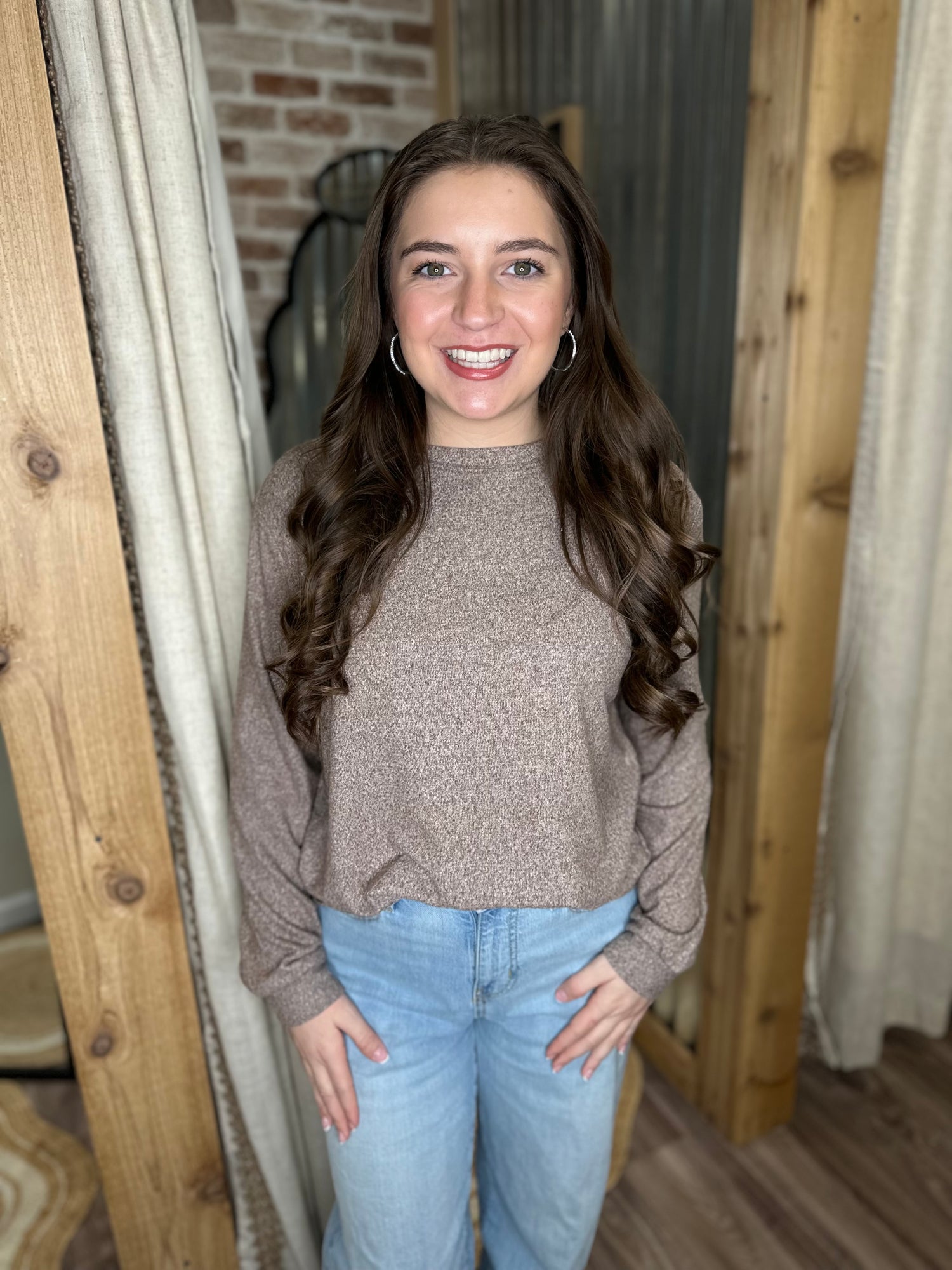 BROWN | SOFT MELANGE HACCI ROUND NECK LONG SLEEVE TEE