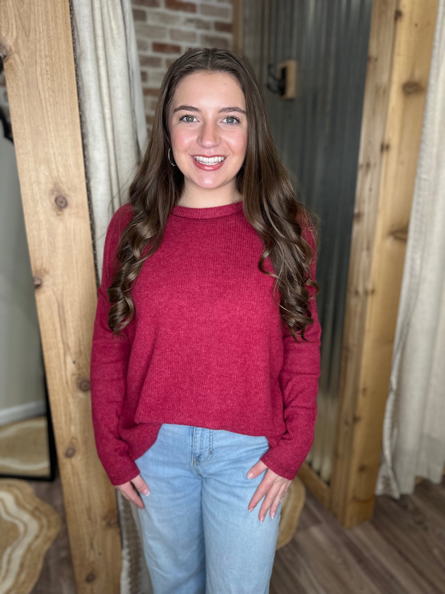 CABERNET | BRUSHED RIBBED HACCI HI-LOW SWEATER