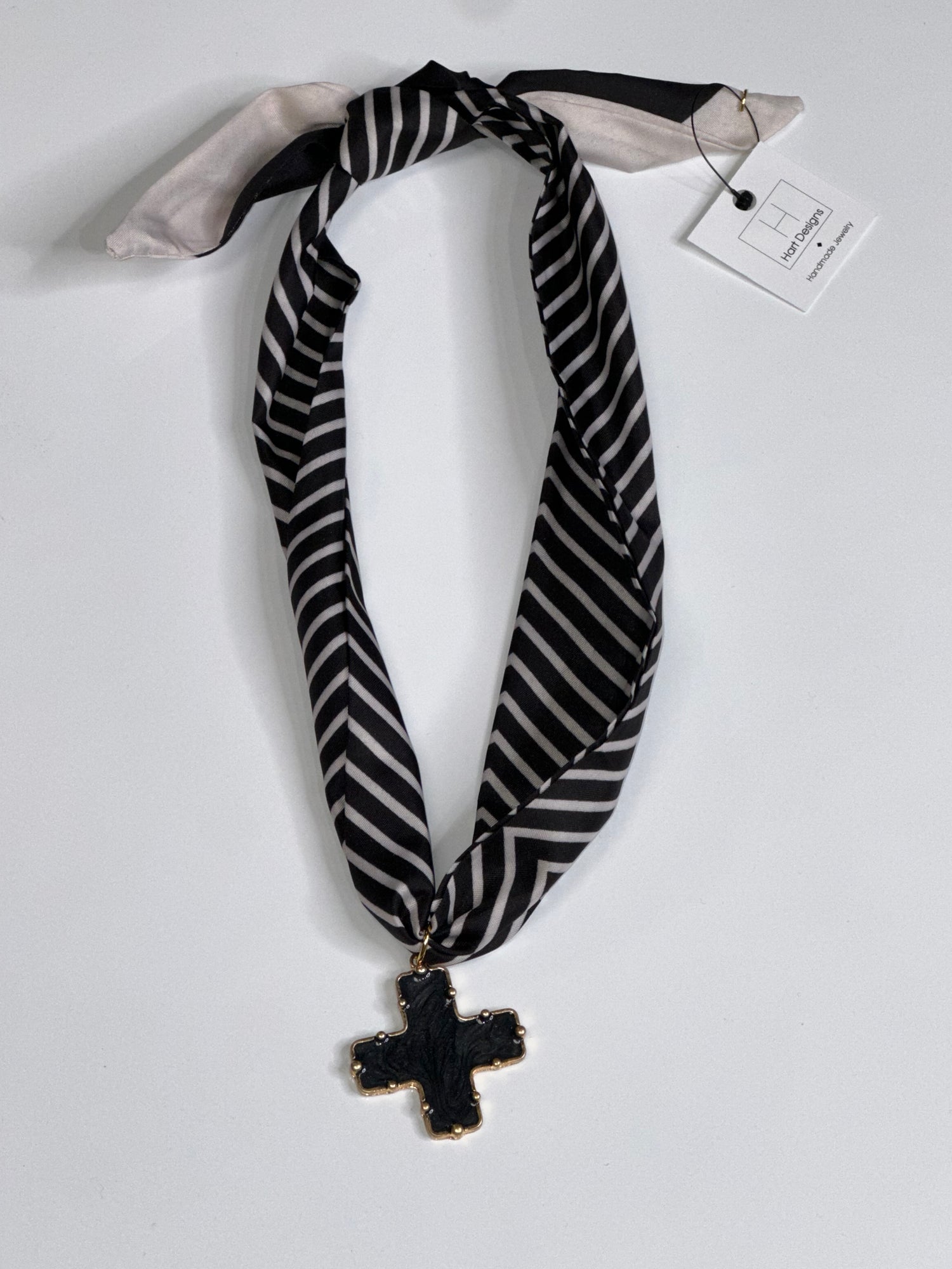 Hart Designs Scarf Necklace- Black Stripe Cross