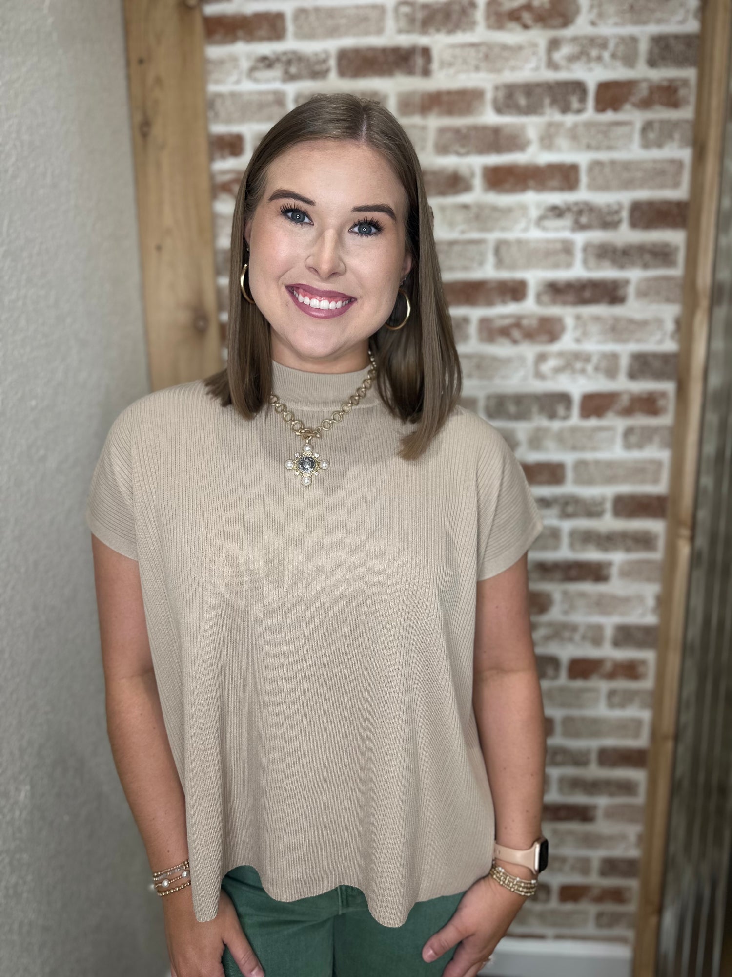VISCOSE MOCK NECK SHORT SLEEVE BOXY SWEATER