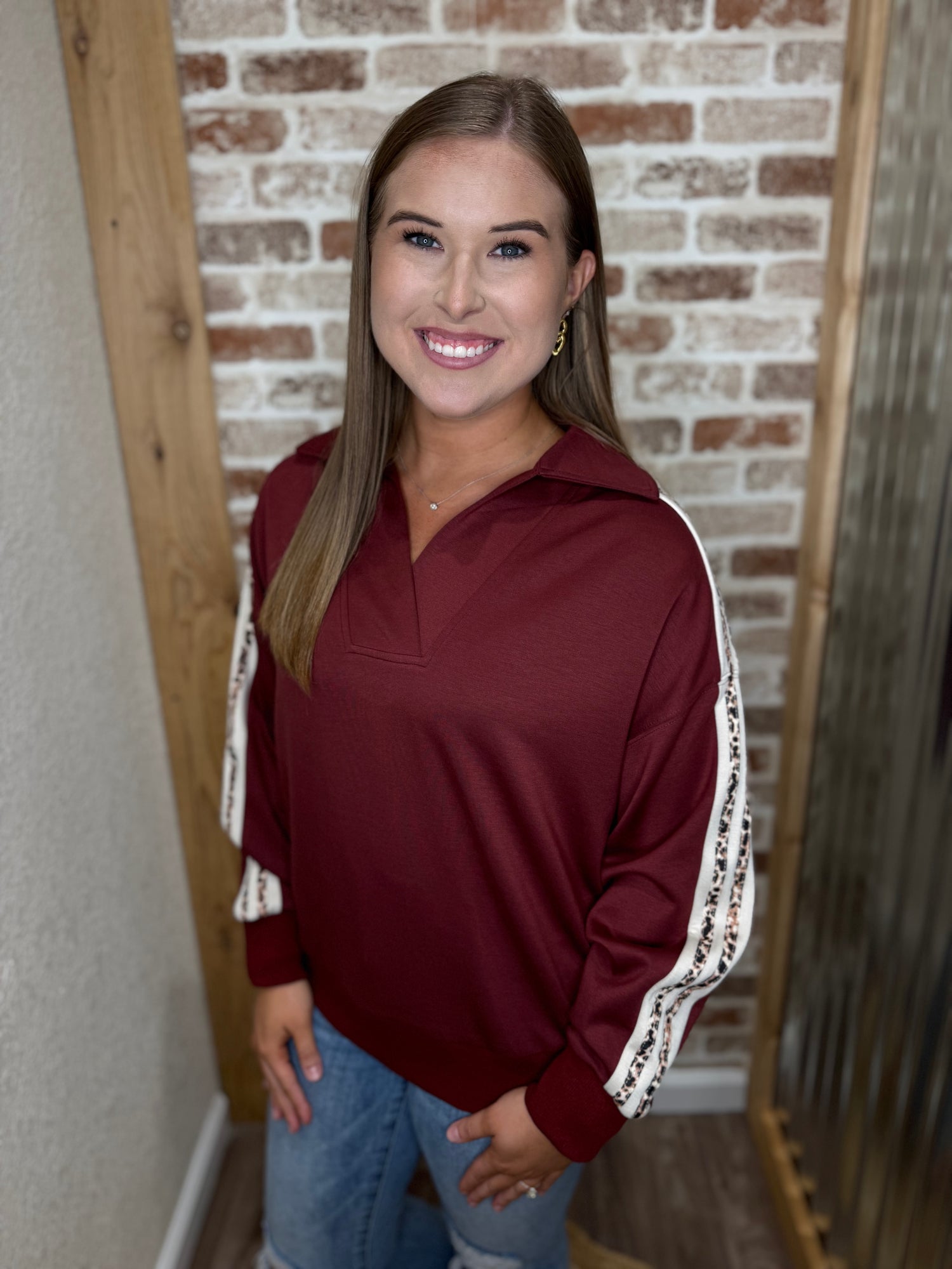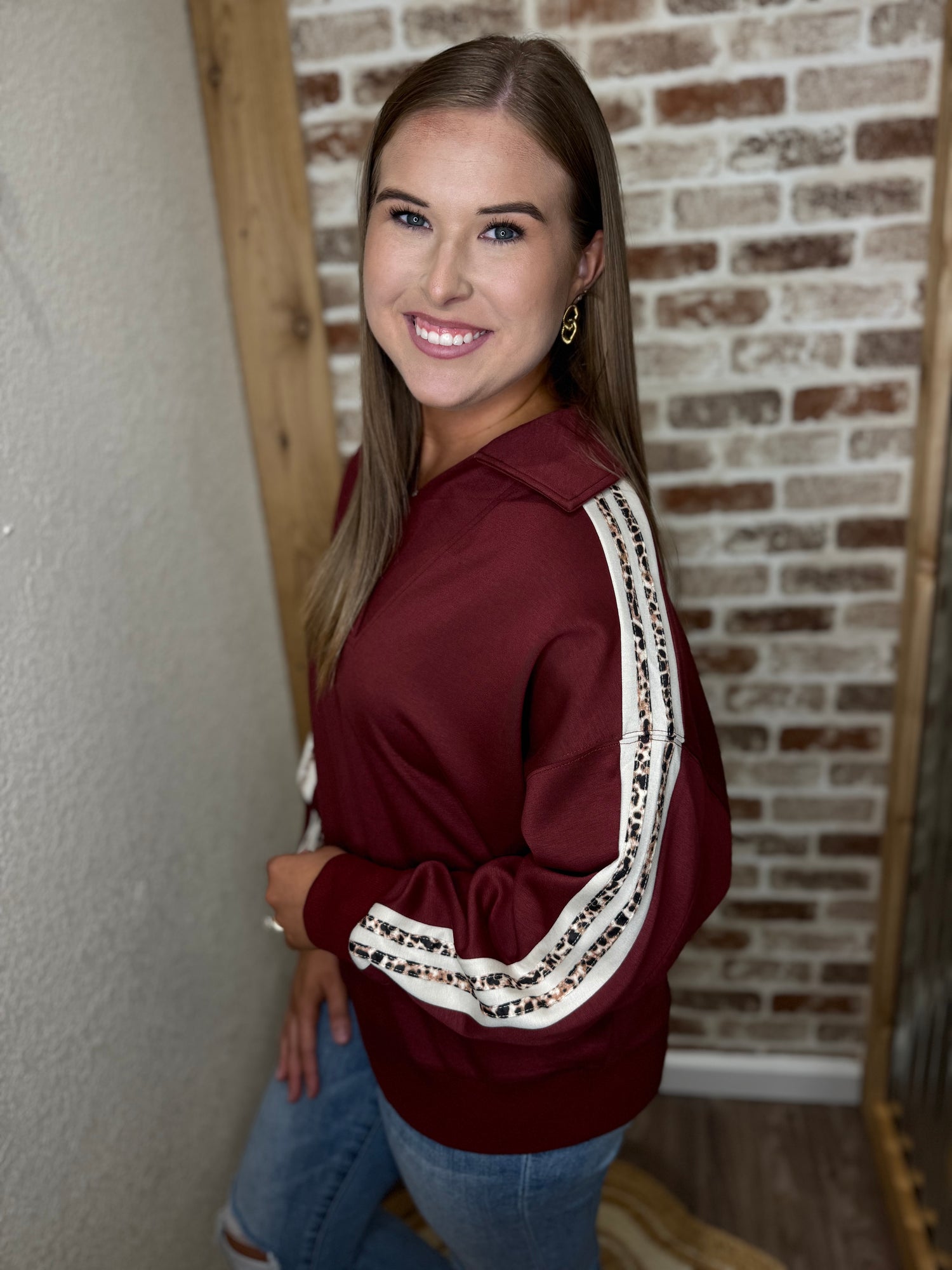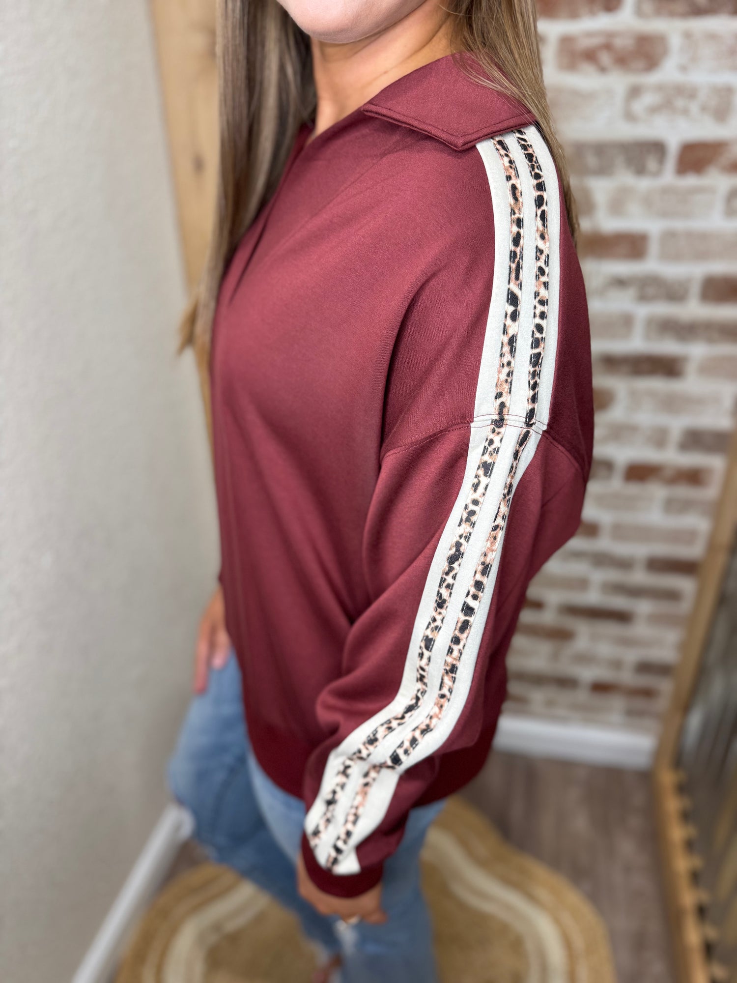 Luxeknit Pullover Sweatshirt with Leopard Accent Sleeves