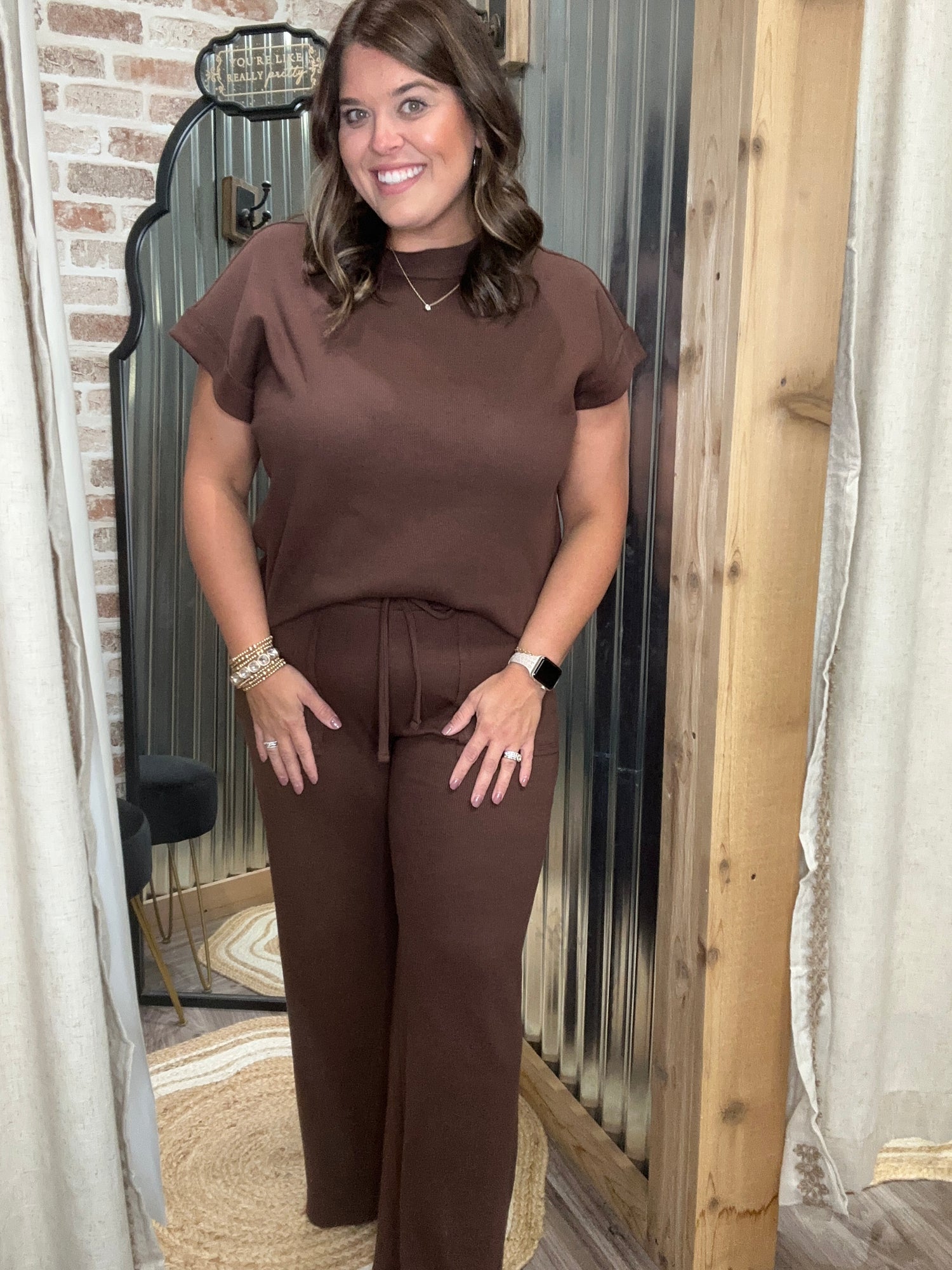 RIBBED SHORT SLEEVE TEE & PANTS SET | Brown