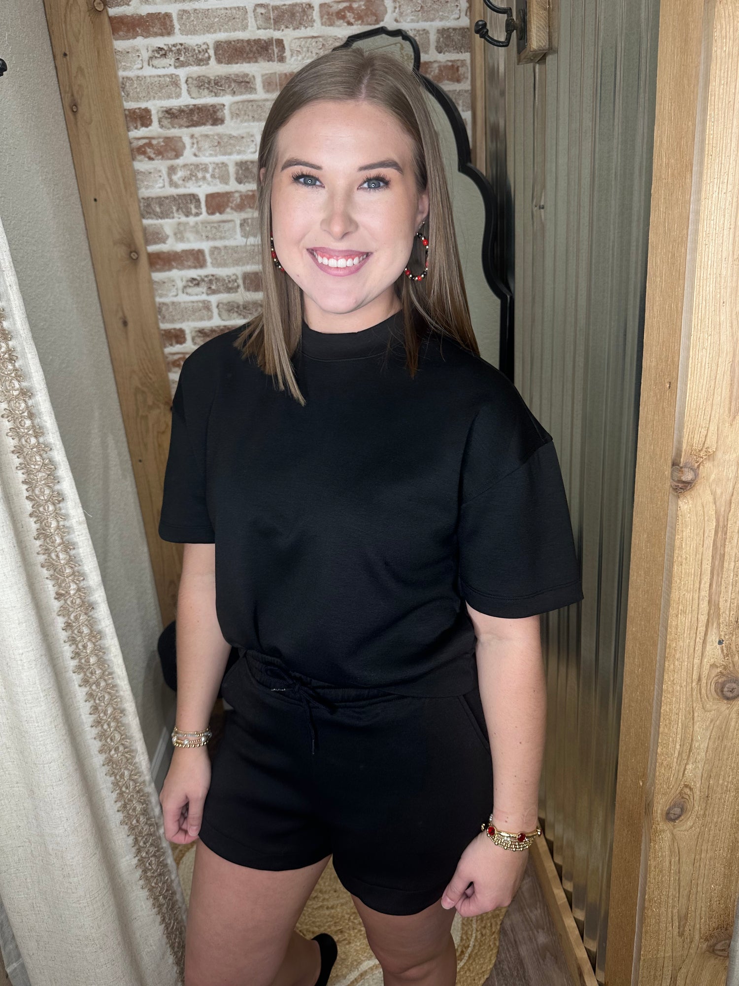 SCUBA HIGH NECK TOP & DOLPHIN SHORTS SET | Black