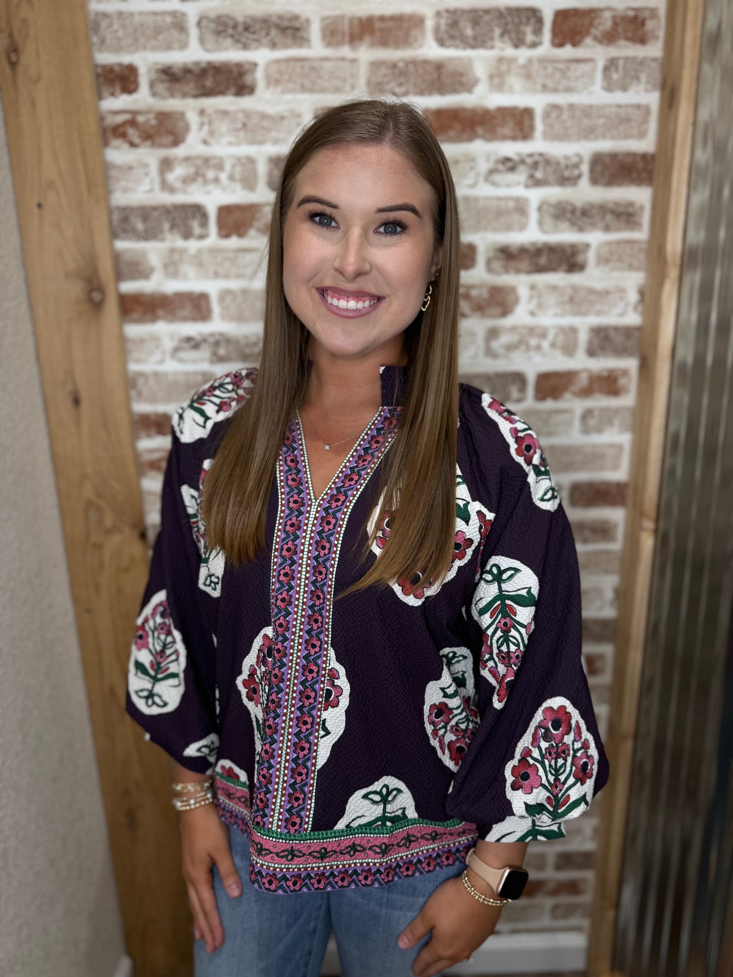 Boho Floral Print Tunic Top