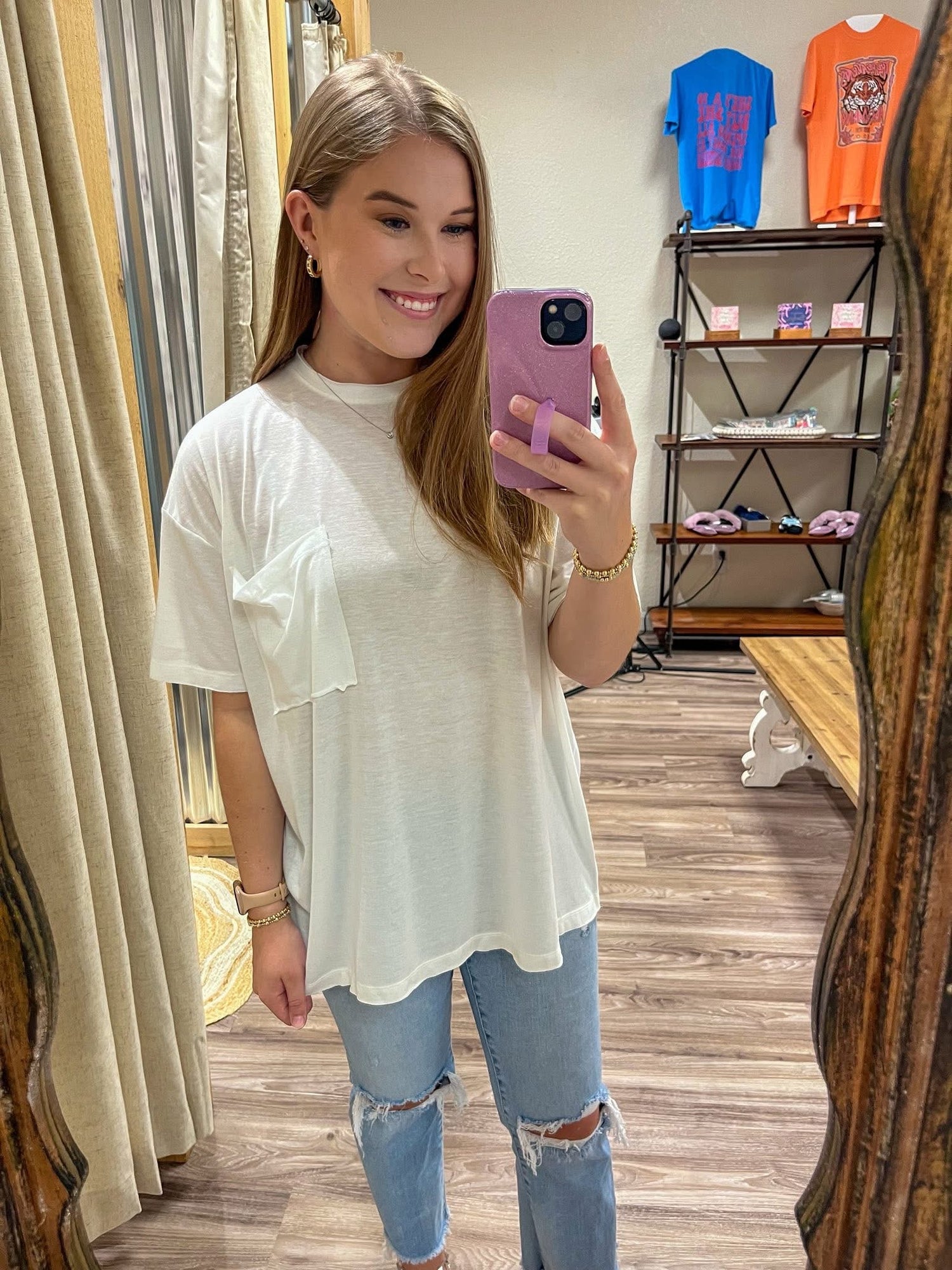 TRI BLEND OVERSIZED FRONT POCKET RAW EDGE BOYFRIEND TEE